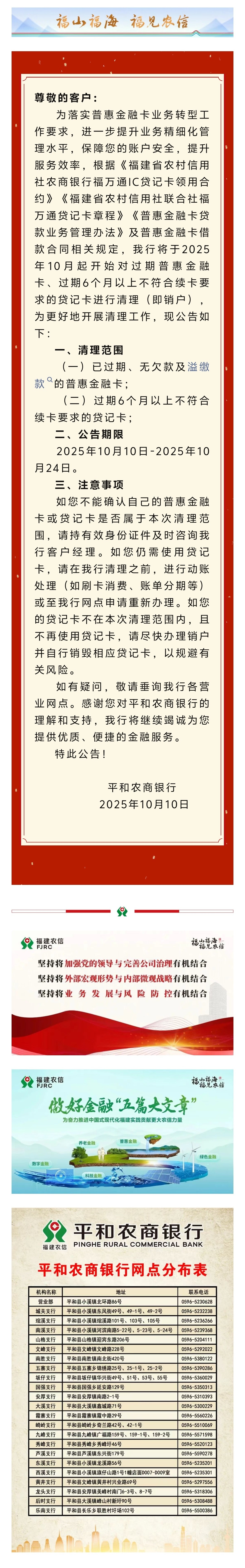 重要公告 | 平和农商银行关于开展普惠金融卡及贷记卡清理工作的公告