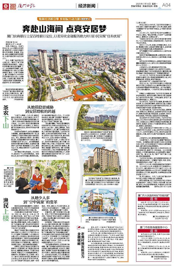厦门农商银行立足百姓银行定位,以差异化金融服务助力村(居)民实现“住有优居”