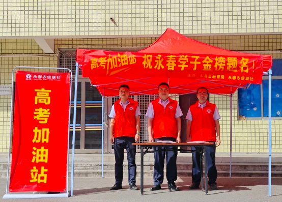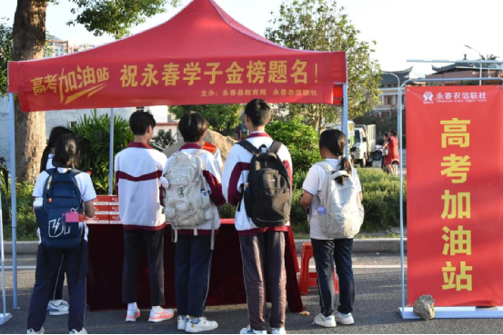 为助力高考,给考生和家长提供便利,高考期间永春农信联社组织志愿者在永春四个考场(永春一中、华侨中学、永春三中、美岭中学)附近布设了高考加油站。